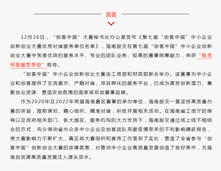 歲序常易,萬象更新。2022年,是黨和國家事業發展進程中十分重要的一年,是區域性股權市場行業改革發展的一年,也是海南股交加快創新的一年。翻開一年的答卷,提升、認可、突破是海南股交全年工作的最美底色。這一年...