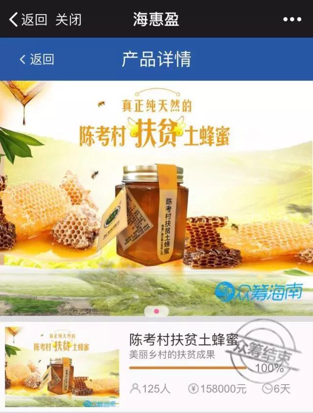4月11日,海南股權交易中心在旗下綜合金融服務平臺“海惠盈”正式推出精準扶貧項目——陳考村蜂蜜扶貧眾籌,由于運用“互聯網+農業眾籌”的創新模式,加上陳考村蜂蜜產品綠色、健康、原生態,受到廣大消費者熱烈歡迎...
