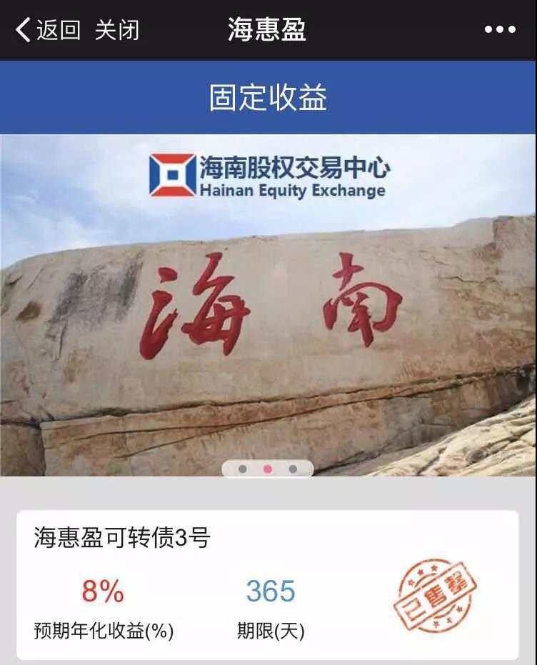 2月1日上午,海南股權交易中心在“海惠盈”綜合金融服務平臺正式上線海惠盈可轉債3號,總額度為300萬元。2月2日晚,本次可轉債在35小時內迅速完成所有認購,完美收官。海惠盈可轉債3號是“海惠盈”平臺目前發行的首...