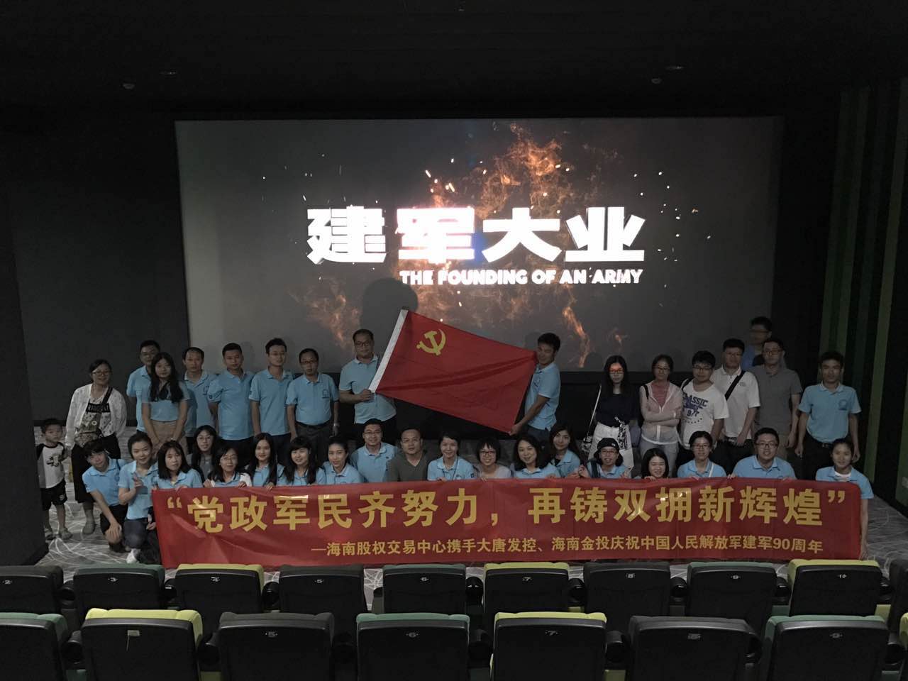 8月5日上午,海南股權交易中心黨支部、工會聯合大唐發控和海南金投在海口舉辦“黨政軍民齊努力,再鑄雙擁新輝煌”主題活動。黨支部與工會充分聯動,走出辦公室,貼近生活與實際,將學習課堂搬到影院,觀看紅色影片《...