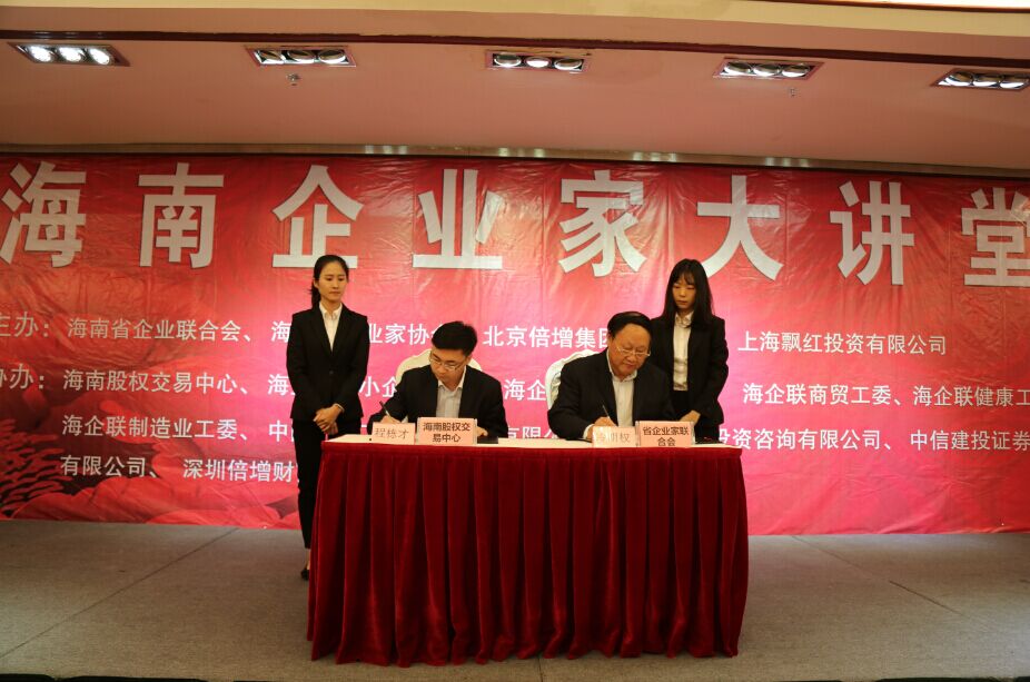 3月28日下午,2016“海南企業家大講堂”在海南寰島泰得大酒店舉行,海南股權交易與海南省企業聯合會 及海南省企業家協會共同簽署了戰略合作協議。三方合作,助力海南中小微企業發展。