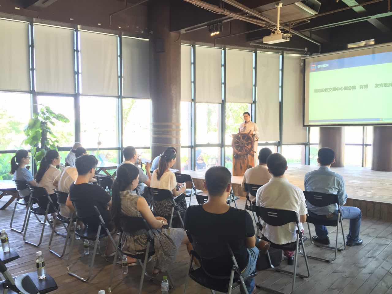 7月20日上午,海南股權交易中心在??谑忻捞m區海甸五東路星海灣水岸風情街b6區玉螺眾創空間舉辦第14期企業培訓活動,10家農業企業參加了本次活動,股交中心副總裁許博出席活動。