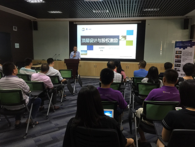 活動邀請了中國股權激勵研究院海南分院院長李瑞為創(chuàng)業(yè)企業(yè)做專題輔導。李瑞院長全面闡述了“股權激勵的三條生死線”、“股權激勵過程中的風險管控與布局”、“內部員工股權激勵的三個準則”等股權激勵的基本知識與概念。本次專題講座有力的幫助了初創(chuàng)企業(yè)更加深入的了解股權激勵的概念與實際應用,以及如何通過股權激勵將高管、普通員工和企業(yè)發(fā)展結合在一起,并建立企業(yè)長期利益共同體、目標共同體。
