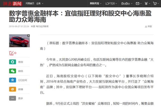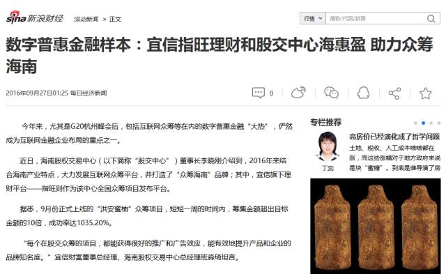 宜信指旺理財和股交中心海惠盈助力眾籌海南