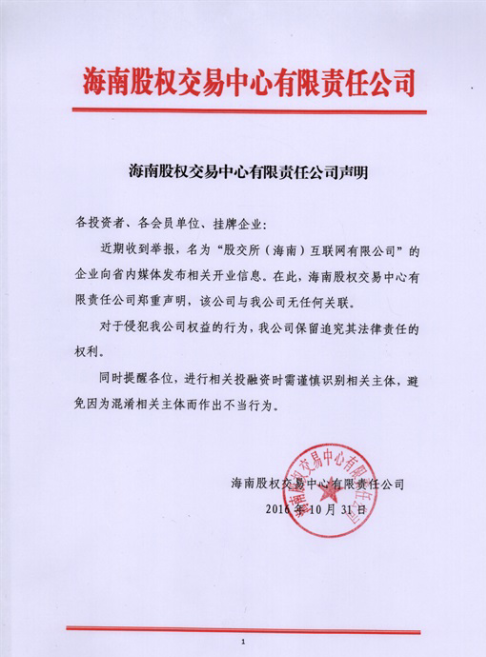 海南股權交易中心有限責任公司聲明