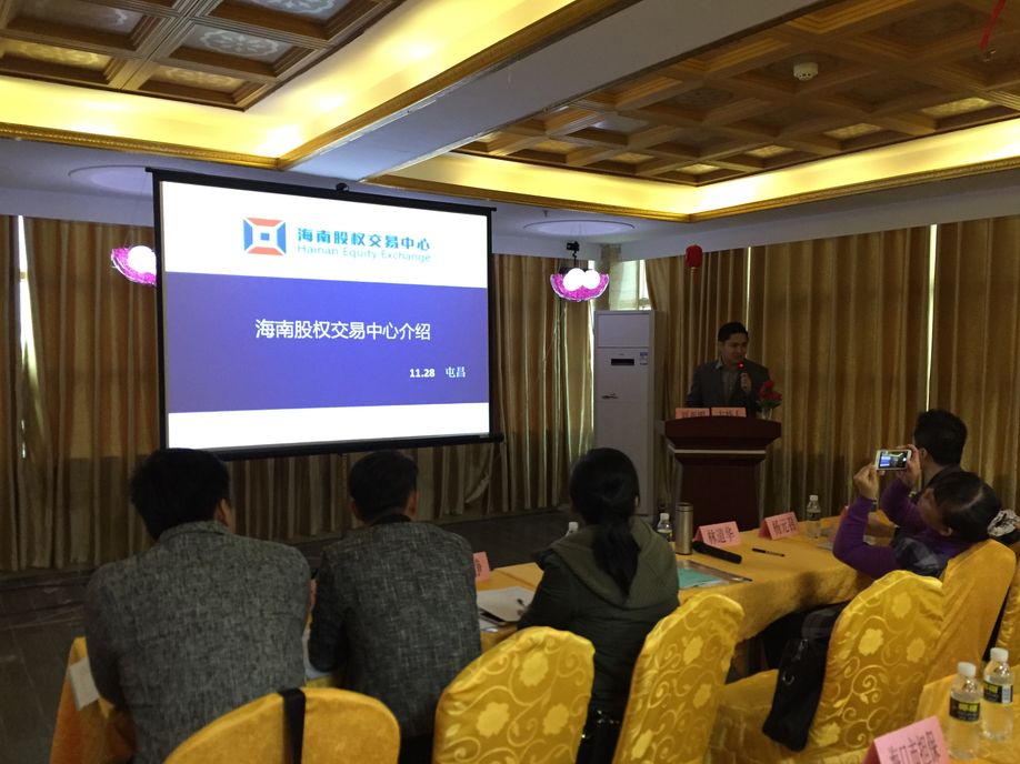 現(xiàn)場,海南股權(quán)交易中心副總裁許博對資本市場體系作了詳細介紹,并對屯昌縣農(nóng)業(yè)發(fā)展情況作了分析。許博表示,海南股權(quán)交易中心作為資本市場的重要組成部分,致力于搭建綜合金融服務平臺,解決中小微企業(yè)融資難題,幫助企業(yè)獲得成長。
