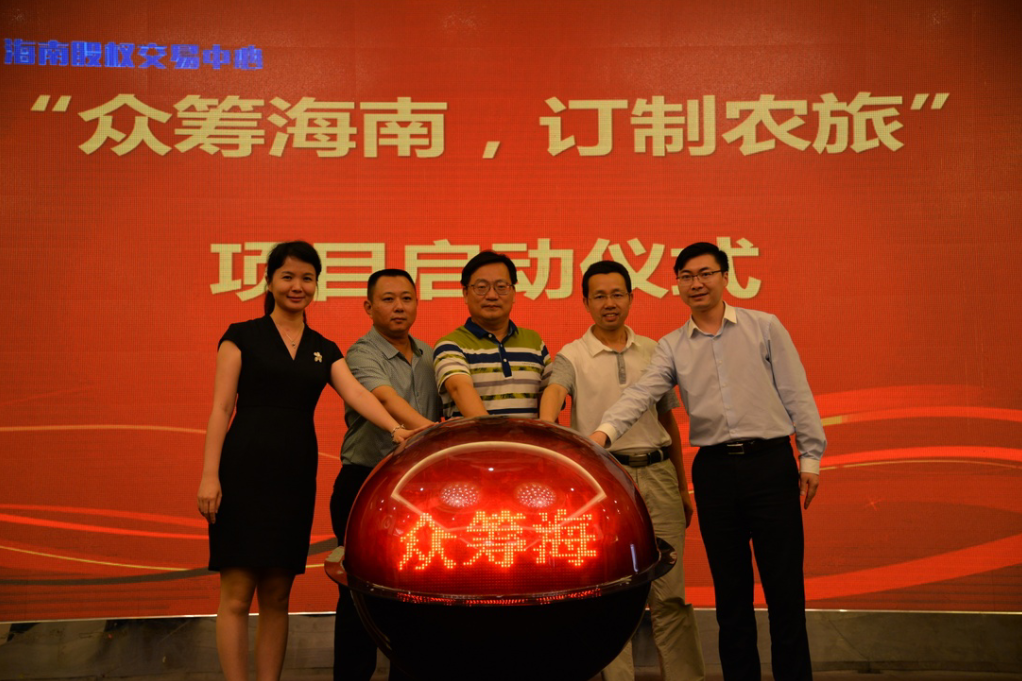 現場,省農業廳信息中心主任林春、副主任陳大穗,省工商聯民營企業組織工作處副處長陳賢敏,股交中心副總經理吳惠玉、程棟才按下啟動球,共同啟動2017年度“眾籌海南,訂制農旅”項目。