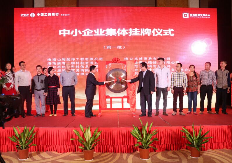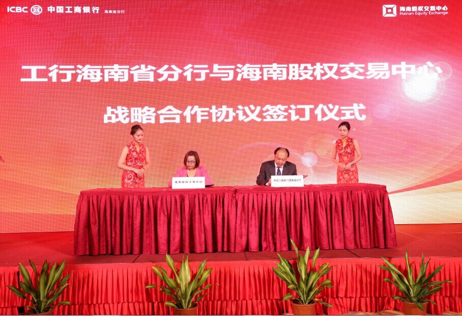 11月26日下午,海南股權交易中心聯合中國工商銀行海南省分行,在海口市新埠島星海灣豪生大酒店舉行了戰略合作簽約儀式暨銀企對接會。20家企業現場掛牌股交中心。海南股權交易中心董事長李曉剛、總經理班淼琦,海南省工行副行長吳傳武、副行長張波和海口市財政局副局長富天放等領導出席了儀式。