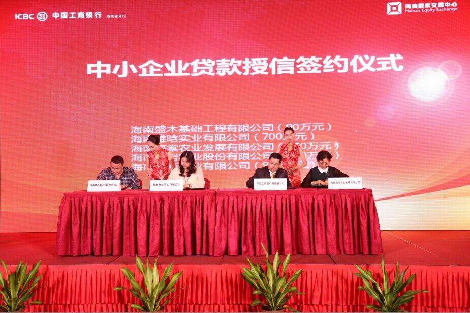 隨后,省工行吳傳武副行長與5家企業正式簽訂了貸款協議和授信協議,在股交中心的撮合之下,省工行一共向5家企業提供合計2260萬元的貸款和授信。其中,海南立新實業有限公司獲得900萬元授信,海南雅晗實業有限公司獲得700萬元貸款,海南仙巖實業股份有限公司獲得300萬元授信,海南海棠農業發展有限公司獲得270萬元貸款,海南盛木基礎工程有限公司獲得90萬元貸款。