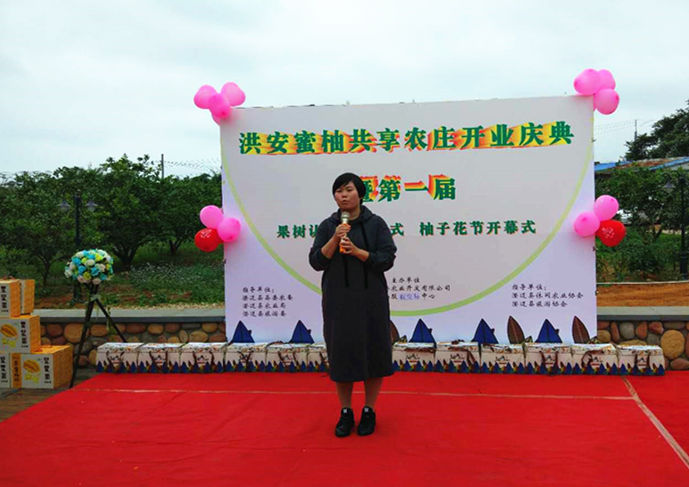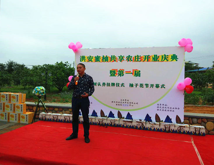 洪安蜜柚果樹認(rèn)籌者代表現(xiàn)場發(fā)言。“柚子正宗,雖然價(jià)格貴,但是因?yàn)槠焚|(zhì)好,口感好,得到許多消費(fèi)者的認(rèn)可。”