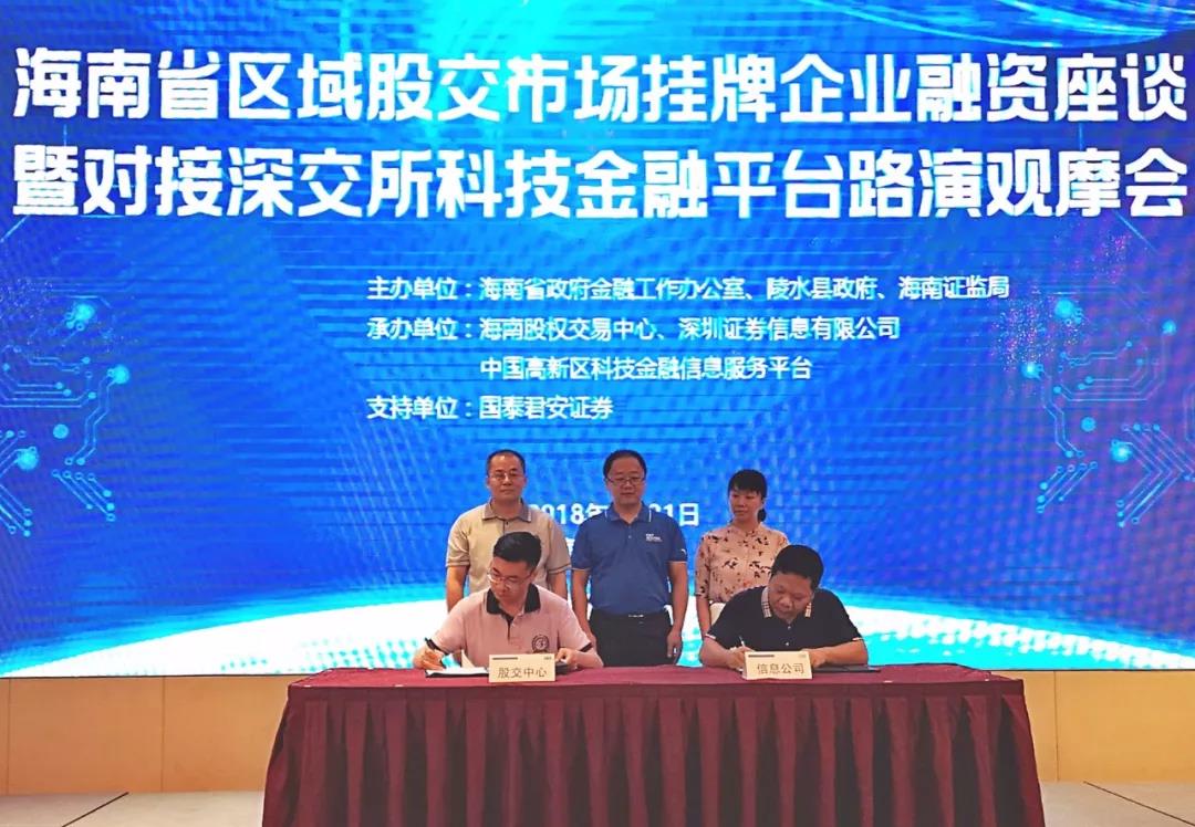 為支持我省區域性股權市場發展,加強海南股權交易中心掛牌企業與深圳證券交易所的有效對接,將省外資本與我省重點產業掛牌企業發展相融合,更大范圍拓寬我省中小企業融資渠道,更好地服務海南自由貿易區(港)建設,7月31日,海南省政府金融工作辦公室、陵水縣政府和海南證監局聯合在陵水縣舉辦海南省區域股交市場掛牌企業融資座談暨深交所科技金融平臺路演觀摩會?;顒佑珊D瞎蓹嘟灰字行摹⑸钲谧C券信息有限公司和中國高新區科技金融信息服務平臺一同承辦,并獲得國泰君安證券的大力支持。