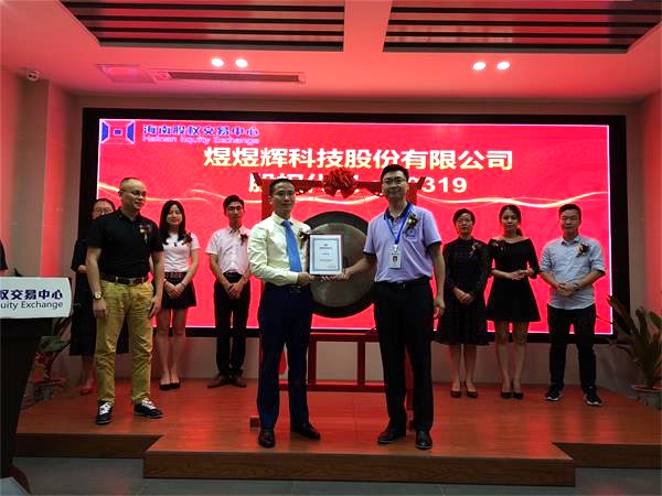 11月19日,海南股交老城軟件園辦公樓內再次響起掛牌的敲鑼聲,在海南股交執(zhí)行總經(jīng)理程棟才、海南省中小企業(yè)服務中心常務副主任李勇燁以及其他現(xiàn)場嘉賓的見證下,煜煜輝科技股份有限公司(以下簡稱“煜煜輝科技”)正式在海南股交交易板掛牌。