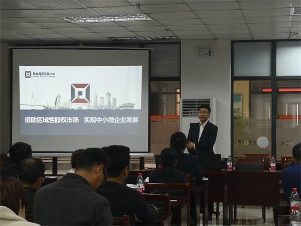 1月16日,為幫助海南西部中小企業(yè)通過資本市場(chǎng),實(shí)現(xiàn)健康發(fā)展,進(jìn)一步解決企業(yè)融資難的問題,由海南股交和海南西部創(chuàng)新創(chuàng)業(yè)產(chǎn)業(yè)園共同舉辦的“借助區(qū)域股權(quán)交易市場(chǎng),實(shí)現(xiàn)中小企業(yè)健康發(fā)展”專題培訓(xùn)活動(dòng)在海南西部創(chuàng)新創(chuàng)業(yè)產(chǎn)業(yè)園會(huì)議室舉行。海南西部創(chuàng)新創(chuàng)業(yè)產(chǎn)業(yè)園董事長(zhǎng)任工廠、海南股交執(zhí)行總經(jīng)理程棟才、海南股交業(yè)務(wù)骨干及30家園區(qū)企業(yè)代表參加了本次培訓(xùn)活動(dòng)。