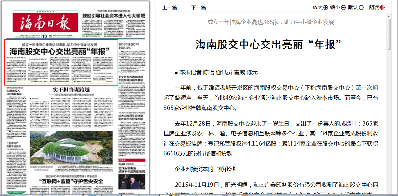 廣鑫印務是海南股交中心精心培育的本土企業之一,于2015年3月掛牌海南股交中心交易板。一年內,海南已有34家本土企業在海南股交中心的培育下,完成股份制改造,成功掛牌海南股交中心交易板。
