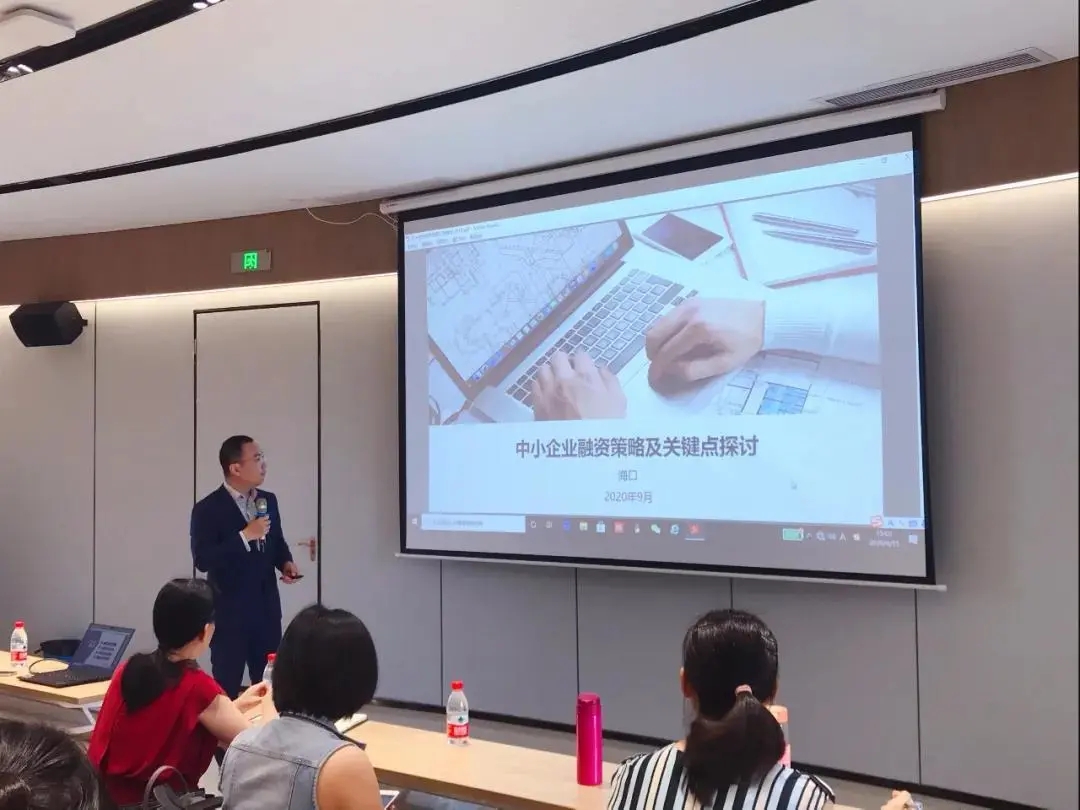 蔡老師首先通過數據圖表展示回顧了全國各地及海南區域在近五年私募股權基金、創業投資基金投資情況;其次,借助具體的融資案例,對中小企業進行融資時的思路、技巧和關鍵點進行深入淺出的講解;最后,運用趣味故事進一步分析和講解中小企業在融資過程中常見的問題。