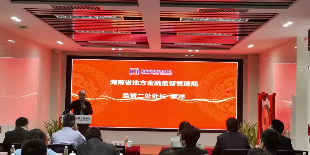12月28日上午,海南股交企業掛牌暨企業表彰儀式在老城軟件園辦公樓交易大廳舉行。海南省地方金融監督管理局監管二處處長羅洋、海南省工業和信息化廳中小企業處副處長孫丹、海南金融控股股份有限公司黨總支委員、副總經理吳曄軍,黨總支委員總經理助理朱宏亮、海南大唐發控股權投資基金管理有限公司董事長王濤、深圳同創天策企業發展有限公司董事長蔡成巨以及掛牌企業代表、媒體記者等近80余人參加了此次活動。