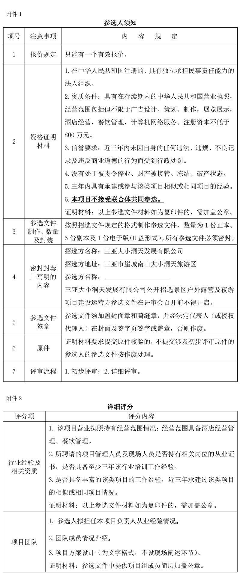 根據相關法律法規,受委托,海南股權交易中心有限責任公司公開招選景區戶外露營及夜游項目建設運營方,為三亞大小洞天景區的戶外露營及夜游項目提供盡職調查、方案設計、項目報批、項目建設、施工、安裝、調試、驗收及運營管理等服務工作。歡迎符合條件的機構遵照本公告的有關規定報名參加,現將有關事項公告如下: