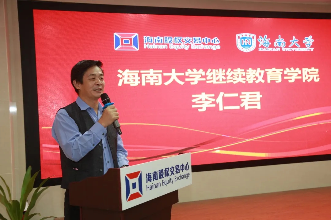 李仁君重點介紹了海南大學繼續教育學院的發展定位、教學理念、辦學特色等基本情況,對近年來海南區域性股權市場的建設成效和海南股交的創新發展給予高度評價。他指出,海南大學繼續教育學院與海南股交深化校企合作具有重要的意義,他表示,教學實踐基地的設立是海大資本班學員通過理論到實踐相連接的一座橋梁,同時也是熟悉企業資本運作的一個平臺。海南大學繼續教育學院將與海南股交建立戰略合作的長效機制,加強互動交流,注重合作實效,共同發展。