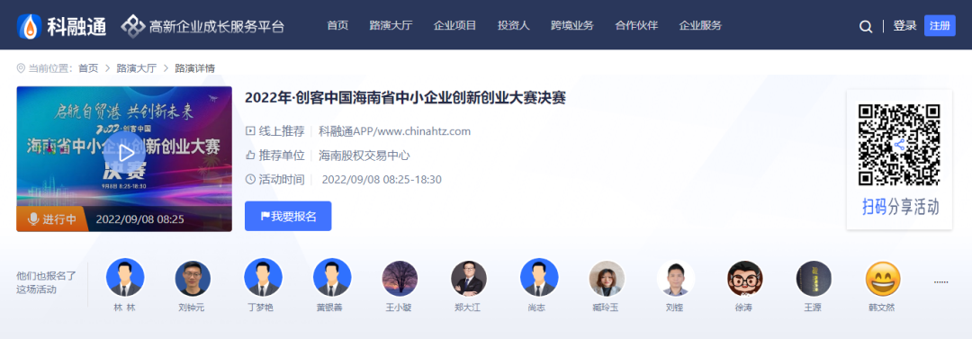 在賽事的后續(xù)服務(wù)上,參加路演的創(chuàng)客組項(xiàng)目,如有落地意向的將由專人為項(xiàng)目團(tuán)隊(duì)提供工商注冊(cè)等企業(yè)設(shè)立服務(wù)及各種孵化培育服務(wù)。對(duì)于省外的項(xiàng)目,有專職工作人員協(xié)助項(xiàng)目在海南落地。如有入圍國家“創(chuàng)客中國”全國決賽參賽項(xiàng)目,賽事承辦方海南股交將負(fù)責(zé)做好該項(xiàng)目參賽的全部服務(wù)保障工作。