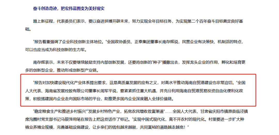 “報告對加快建設現代化產業體系提出要求,這是高質量發展的應有之義,對高水平推動海南自貿港建設也非常迫切?!比珖舜蟠?、海南省發展控股有限公司董事長周軍平說,要緊緊抓住重大機遇,并充分利用海南自貿港貿易投資自由化便利化政策,積極搭建國內企業走向國際市場的平臺,助推更多國內企業深度融入全球價值鏈。
