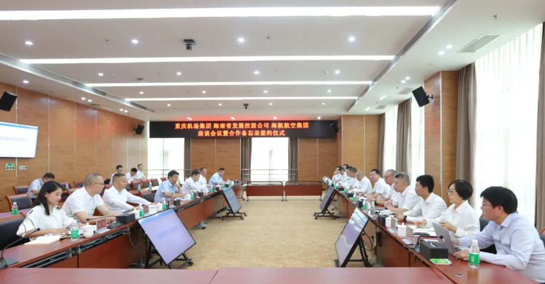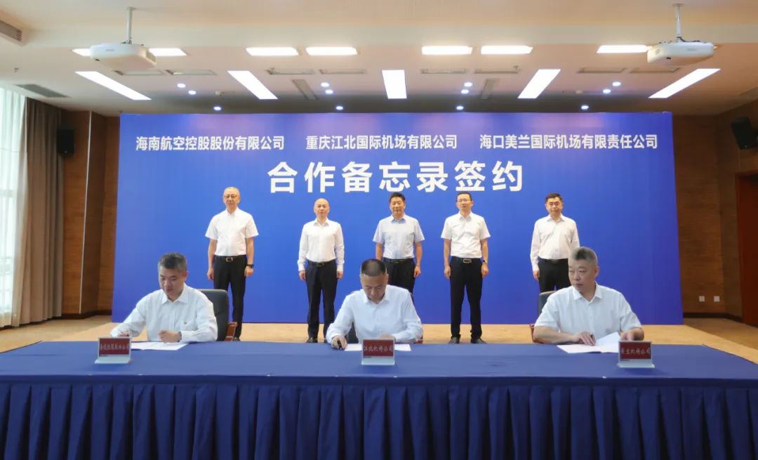 6月28日上午,海南控股與重慶機場集團、海航航空集團在重慶舉行工作座談,三方圍繞優勢資源互補、航線網絡布局優化、臨空產業發展、機場商業運營等進行經驗分享與友好交流。??诿捞m機場與重慶江北機場、海南航空簽署合作備忘錄。海南控股黨委書記、董事長周軍平,重慶機場集團董事長戴科、總經理黃偉,海航航空集團總裁、海南航空董事長丁擁政出席座談會并見證簽約。
