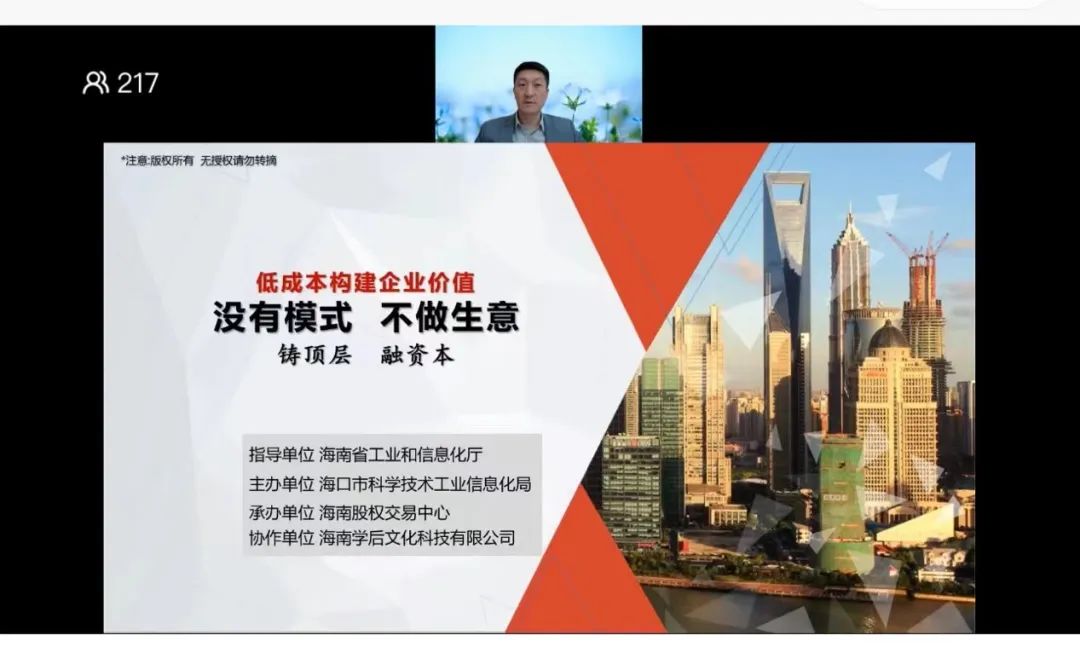 此次活動(dòng)是海口市優(yōu)化中小企業(yè)發(fā)展系列培訓(xùn)活動(dòng)的第三期活動(dòng),得到了海南省工信廳的指導(dǎo)和支持。活動(dòng)采取“線上+線下”的形式開(kāi)展,本次系列活動(dòng)共舉辦10場(chǎng),累計(jì)線下參會(huì)企業(yè)達(dá)300余家,線上直播217人次參與培訓(xùn)。