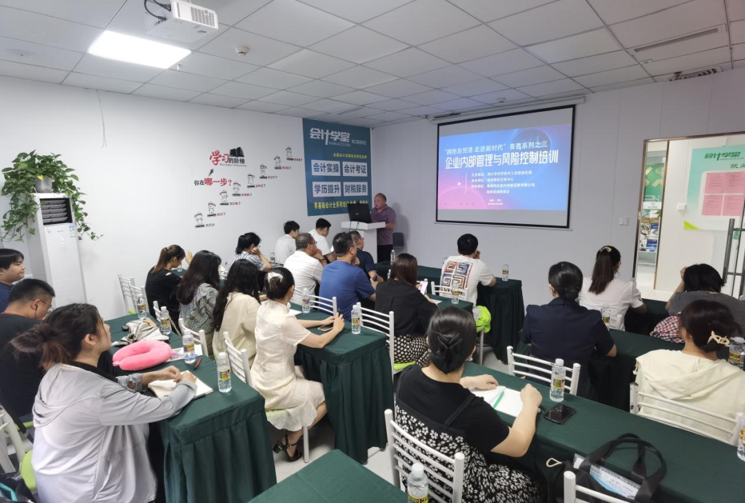 活動在海口周昌大廈舉行,由會計學堂金牌講師屠富 老師向我省中小企業介紹了現代企業管理制度,以及如何完善企業的內部控制體系規范進行有效監督約束,避免風險,確保企業經營活動的正常運行。約20多家企業到場參與培訓。