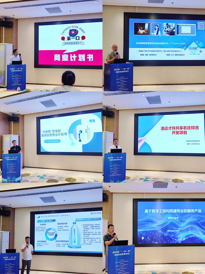 投融資路演環(huán)節(jié),海南澄邁來一口生態(tài)農業(yè)發(fā)展有限公司、他她蜜(海南)科技有限公司、海南騰龍凱悅科技有限公司、澄邁遠豐實業(yè)有限公司、海南泰新電氣成套設備工程有限公司、海南天鴻實業(yè)股份有限公司等六家優(yōu)質企業(yè)分別進行了精彩的現(xiàn)場路演,各項目代表依次圍繞企業(yè)背景、項目方向、研究成果、應用前景及融資規(guī)劃等內容對企業(yè)的創(chuàng)新成果和發(fā)展?jié)摿M行了展示。